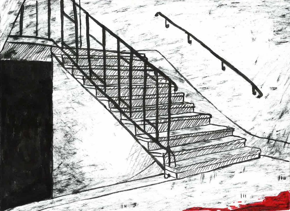 Die Uhr blieb stehen. Eingefroren. Kaltenfroh stand regungslos vor seinem Computer. Das Lachen hallte immer noch nach. «Hallo?», fragte der Rektor mit zitternder Stimme. Er ging drei Schritte Richtung Fenster und schloss sie. Dann weiter zwei Schritte Richtung Türe. Nach fünf leisen Schritten stand er im Gang, nichts. Kein Schatten, keine schwarze Figur. Leise schlich er die Treppe hinunter. Einmal dachte er den Atem einer Person auf dem Nacken zu spüren und ging schneller. Der Atem blieb. Er rannte nun die Treppen hinunter, in die Eingangshalle und den Haupteingang hinaus. Er war dem Atem entkommen. Immer noch mit schnellem Gang entfernte er sich von der Schule und fühlte sich erst beim Bellevue wieder sicher. Früh am nächsten Morgen machte der Hauswart seine Runde, um sich zu vergewissern, dass alle Zimmer im rechten Zustand waren, bevor die Schüler kamen. Er schloss das Rektorat auf, drückte abwesend auf den Lichtschalter und wich zurück. Auf der gegenüberliegenden Wand stand mit greller roter Farbe geschrieben: WER ENTKOMMT, TRITT IN DIE NÄCHSTE FALLE.